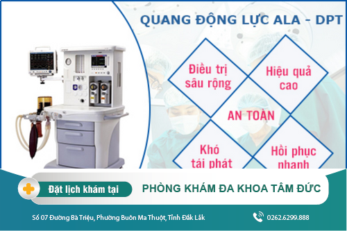 Hiện nay có rất nhiều phương pháp hỗ trợ điều trị bệnh lý sùi mào gà tuy nhiên không phải phương pháp nào cũng mang lại hiệu quả. Đến với Phòng Khám Đa khoa Tâm Đức (Số 07 Đường Bà Triệu, Phường Buôn Ma Thuột, Tỉnh Đắk Lắk), bệnh nhân sẽ được khám và chữa trị bằng những phương pháp tối ưu, tiên tiến nhất. Tiêu biểu là phương pháp ALA – PDT.